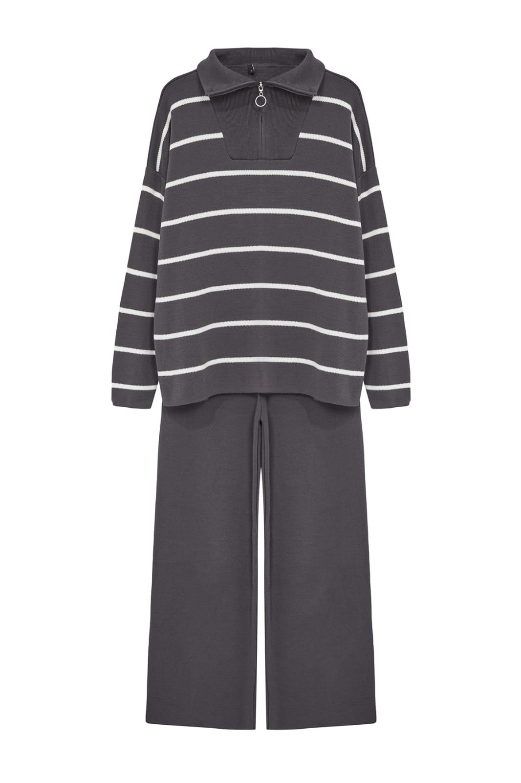 Anthracite Wide-Cut Zippered Knitwear Top-Bottom Set
